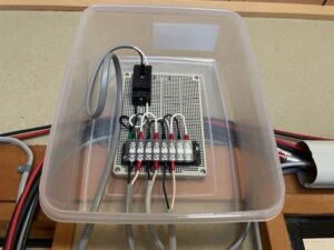 ハイブリッドインバーターからそれぞれのコンセントまではまず3個の回路を持たせてあります。写真だけでは分かりづらいですが、もう1回路増やせます。その前にもブレーカーを1つ置いてあります。本当は4個それぞれにブレーカーを持たせた方が良いのですが…。端子台で4回路まで増やせるようにしました。