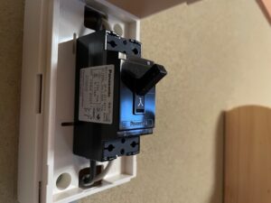 ほとんど使っていない回路の線を拝借してハイブリッドインバーターまでに15Aのブレーカーを入れて商用電源を確保しています。メンテナンスの為にも必ずブレーカーは必須だと思います。