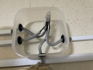 1個目の回路は洗面所の所まで行き、主に2つの扇風機に使用しています。冬場は除湿機にも使うかな?