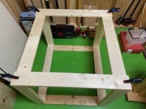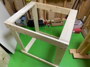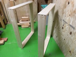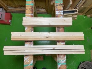 まず枠組みですが、単純に1×4をカットして750㎜を4本、700㎜を4本、500㎜を4本用意しました。