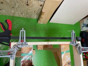 そしてビスを打つ所をさらにクランプします。基本私はビスを打つ所は適度な長さのクイックバークランプでクランプしています。インパクトで締め込めば引っ張りますがなんかねぇ・・・
