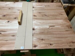 では壁を作るのに合板を切ります。写真に写っているのは自作の直線切り用の治具。マルノコも下手くそなのでこれが無いと、けがいた線の上を真っ直ぐ切れないのです。