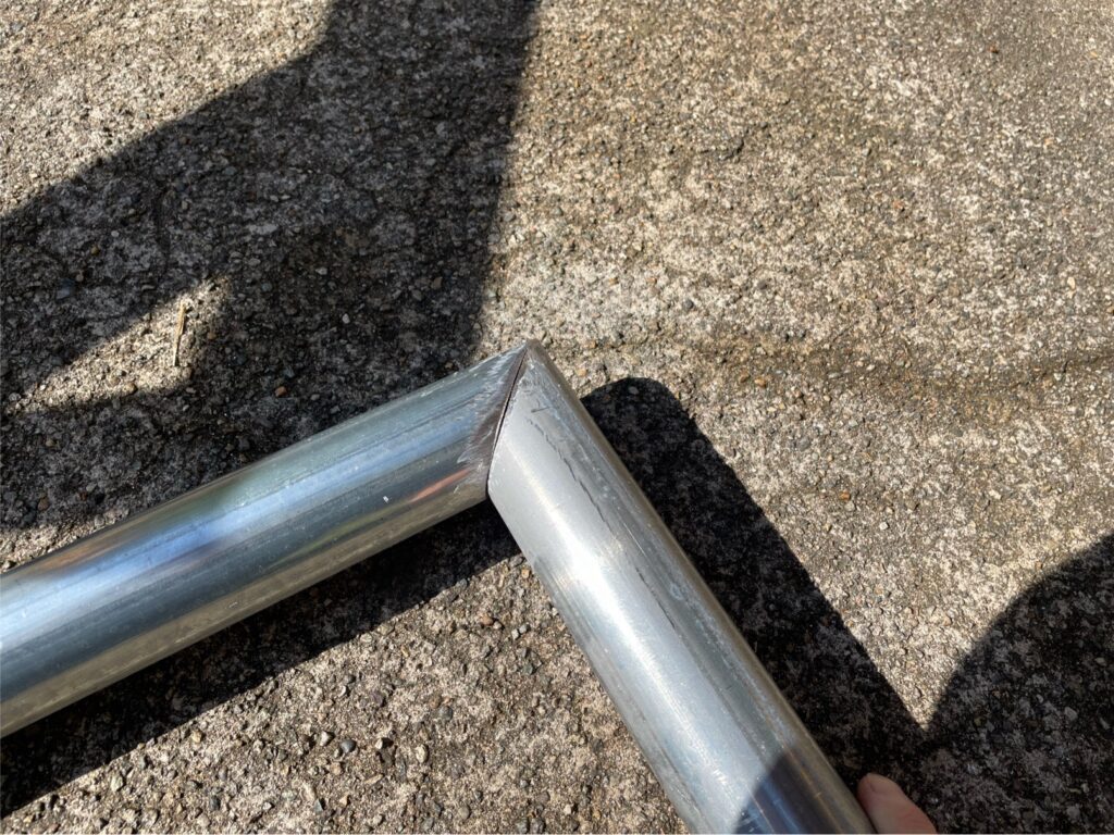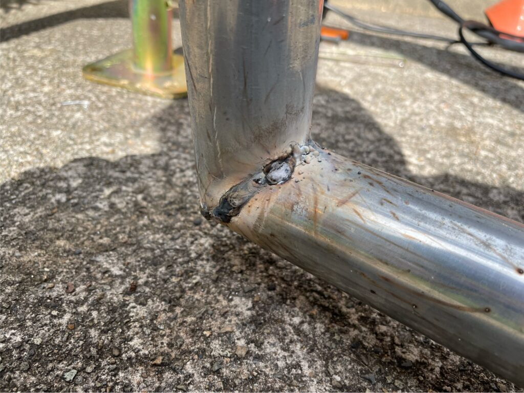 ☝️まぁ普通にこんな感じで溶接してみたいと思います。パイプの表面はメッキ処理してあるのでサンダーなどで地肌を出してあげなければなりません。