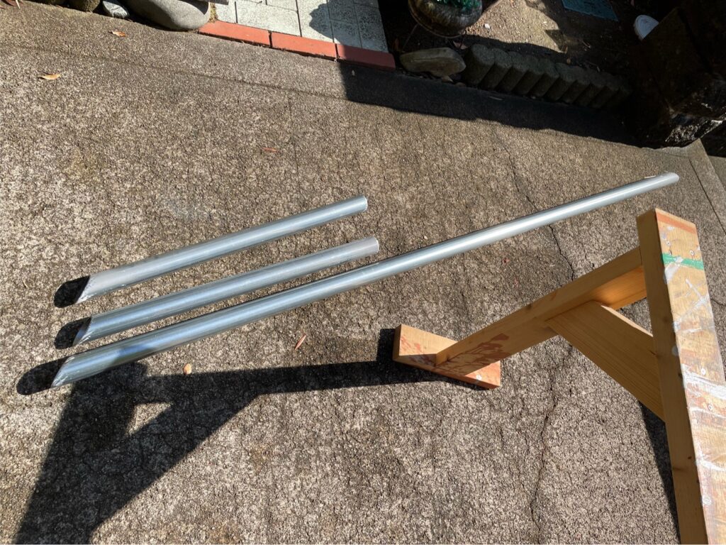 まずは3mのパイプの両口と、1mのパイプは片口だけ45度でカットします。
