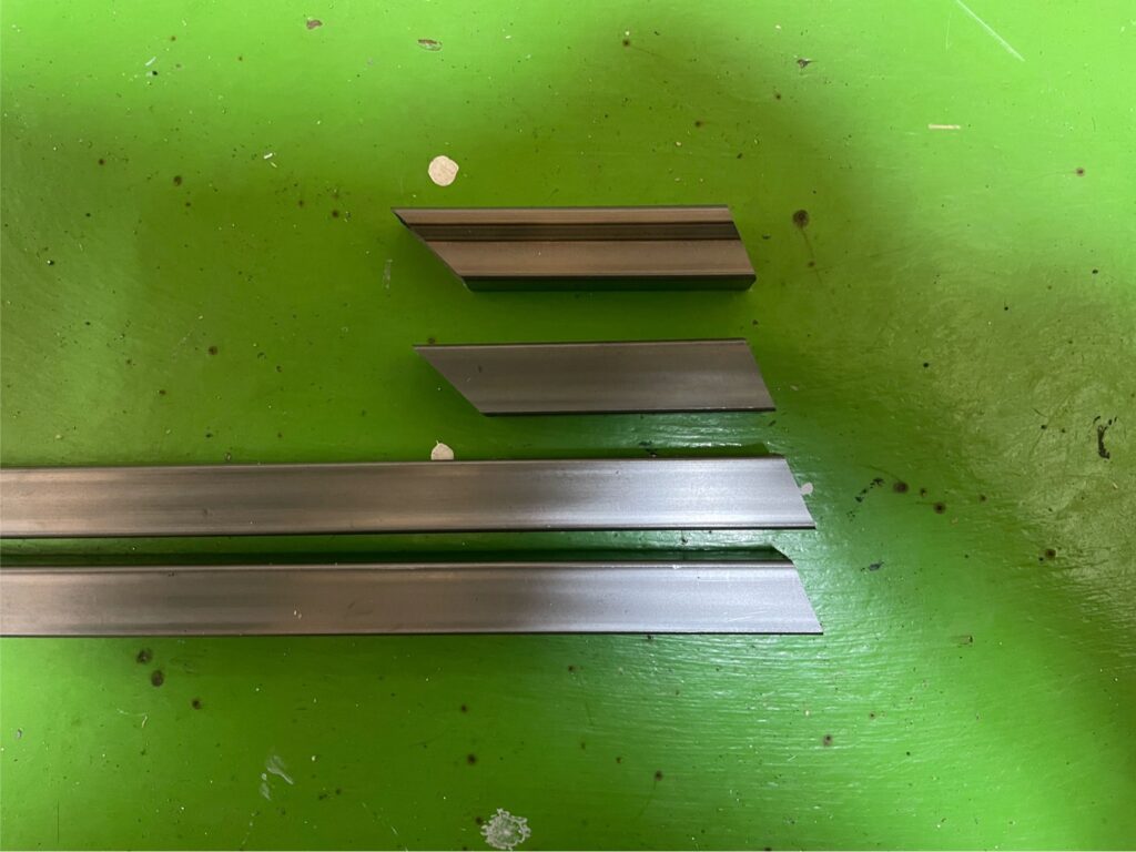 角パイプの中で、角度切りしなければならないところがあるので、図面通りに角度を合わせて切断します。