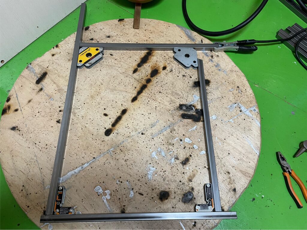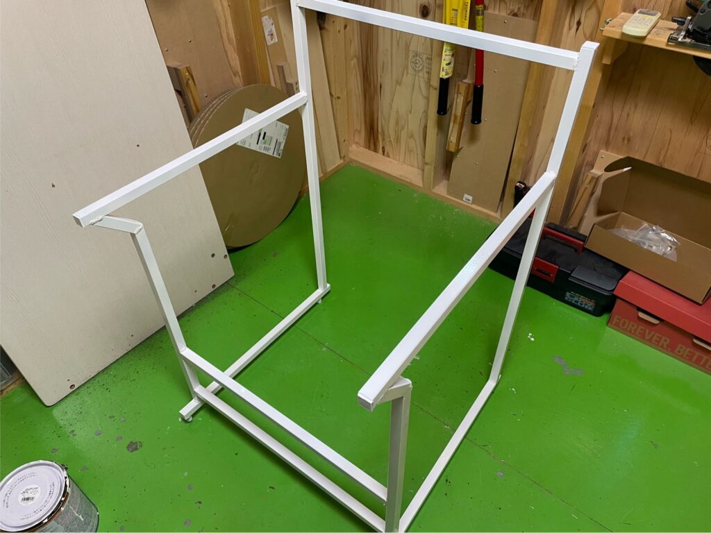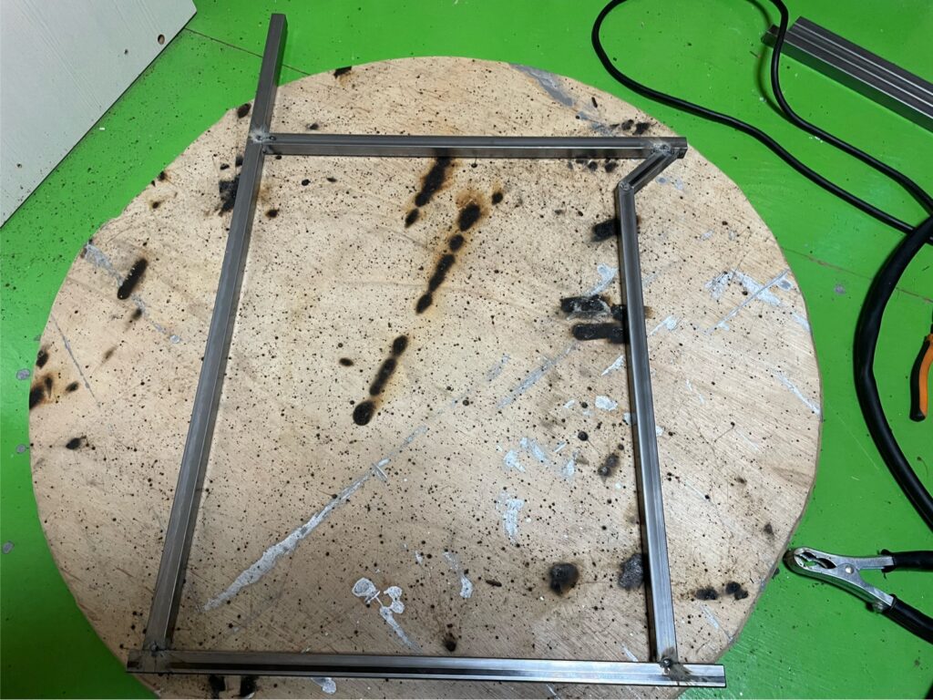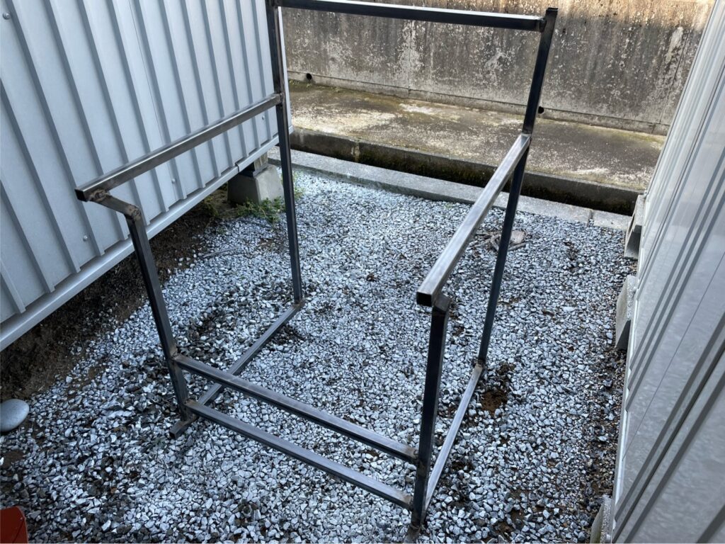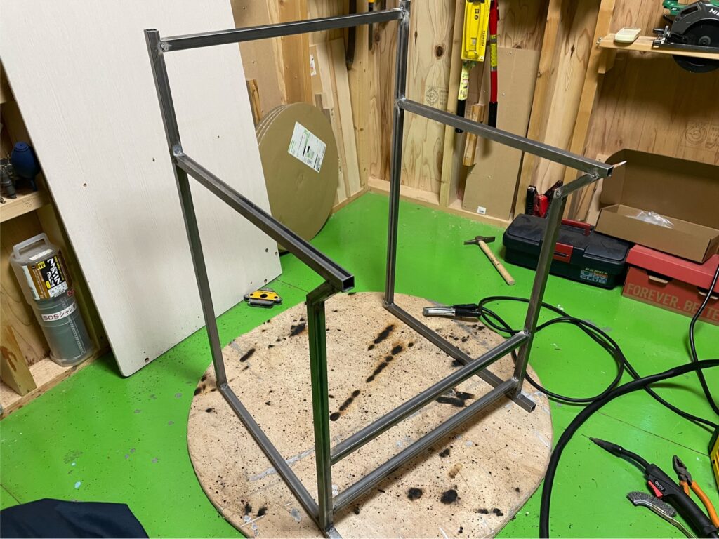 そして、その2セットをさらに角パイプで繋いで大体の形が出来上がりました